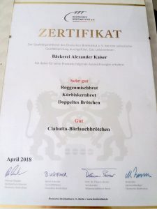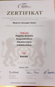 Auszeichnug 2020 Brot und Brötchen
